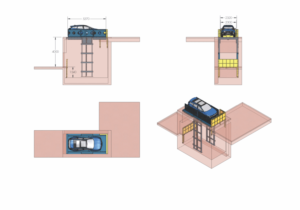 - Ideal for lifting cars among ground, upper & lower levels at different heights.